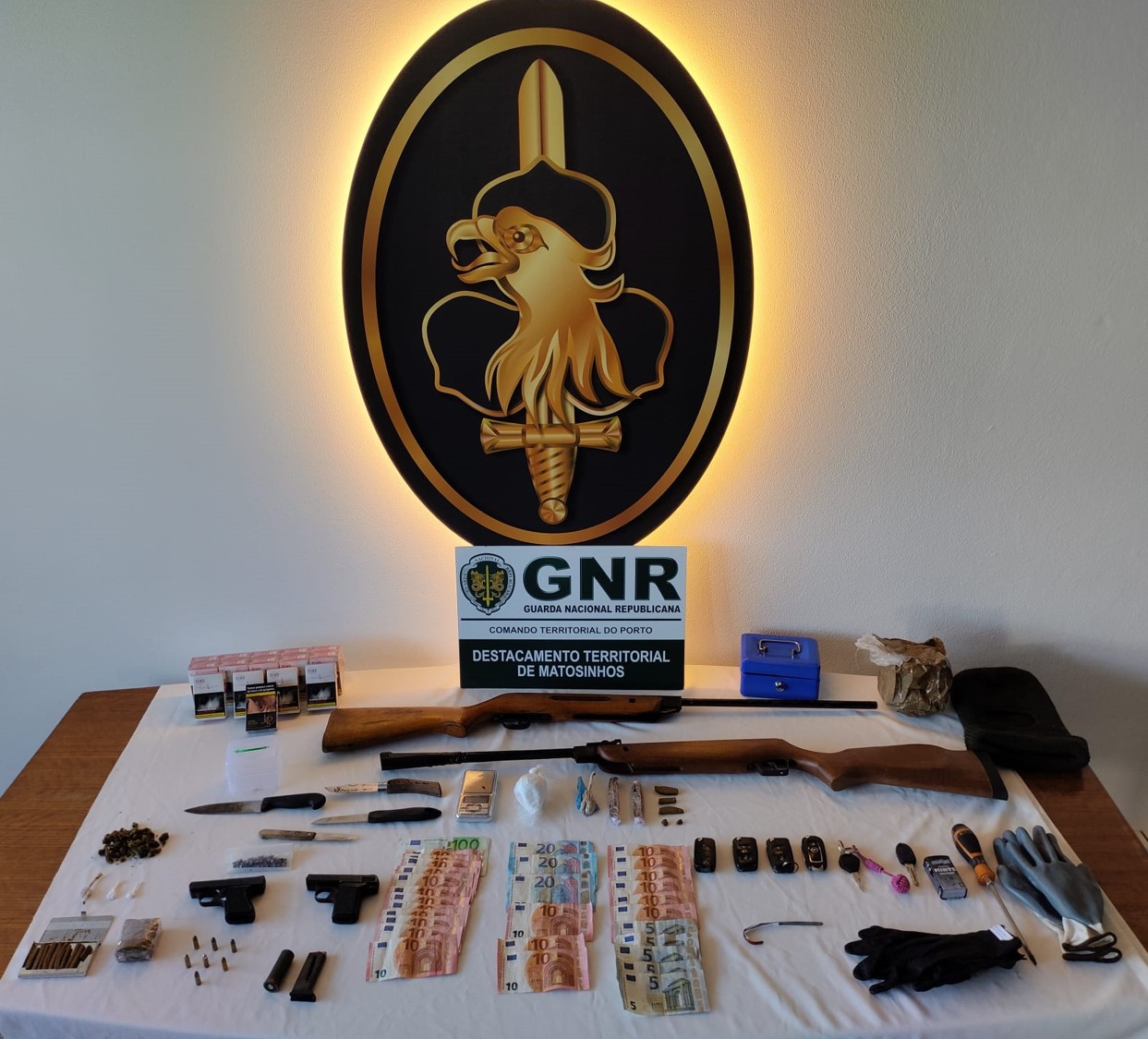 O Comando Territorial do Porto, através do Núcleo de Investigação Criminal (NIC) de Matosinhos, no dia 6 de setembro, deteve três homens, com idades compreendidas entre os 23 e os 29 anos por posse de armas proibidas, falsificação de documentos e tráfico de estupefacientes, no concelho de Matosinhos.