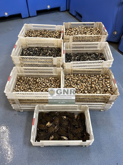 A Unidade de Controlo Costeiro (UCC), através do Subdestacamento de Controlo Costeiro de Peniche, no dia 1 de fevereiro, apreendeu 269 quilos de moluscos bivalves vivos e 31 quilos de crustáceos, num estabelecimento com número de controlo veterinário suspenso, no concelho de Caldas da Rainha.