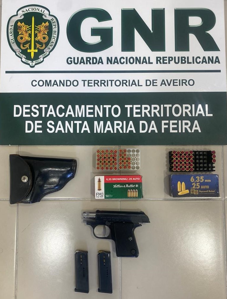 O Comando Territorial de Aveiro, através do Núcleo de Investigação e Apoio a Vítimas Específicas (NIAVE) de S. João da Madeira, no dia 13 de novembro, deteve um homem de 42 anos por posse de arma e munições proibidas, no concelho de Oliveira de Azeméis.