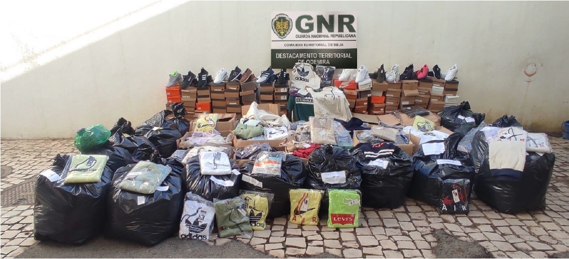 O Comando Territorial de Beja, com o reforço do Destacamento de Ação Fiscal (DAF) de Évora, no dia 13 de novembro, apreendeu cerca de 1 500 artigos durante uma operação de combate à contrafação de artigos de vestuário e calçado, em Vila Nova de Milfontes, no concelho de Odemira.