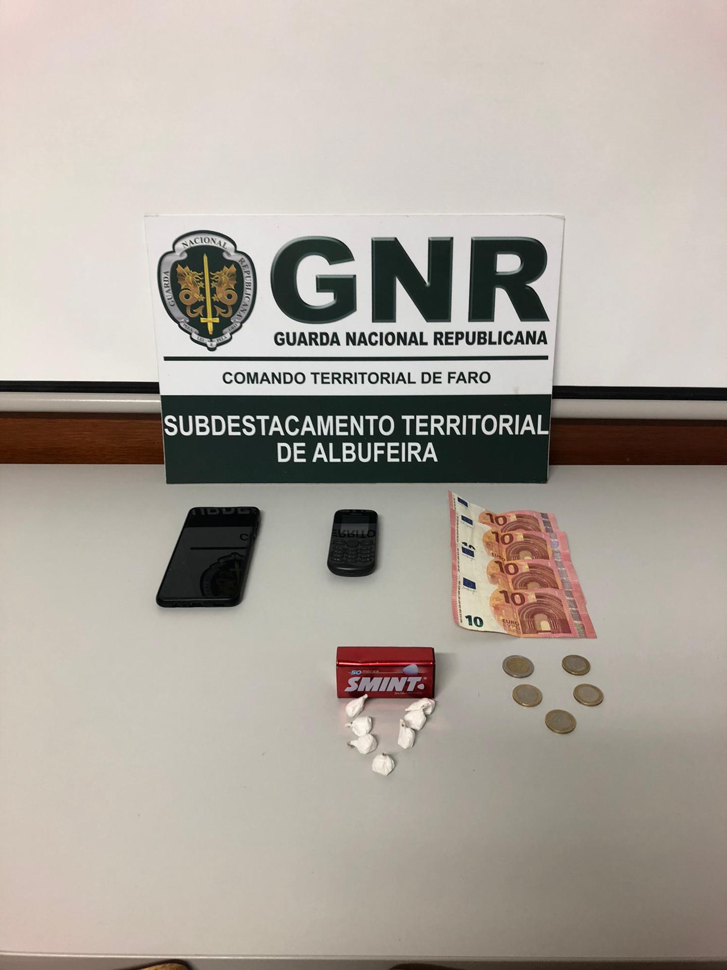 O Comando Territorial de Faro, através do Subdestacamento Territorial de Albufeira, no dia 23 de dezembro, deteve em flagrante um homem de 54 anos por tráfico de estupefacientes, em Albufeira.