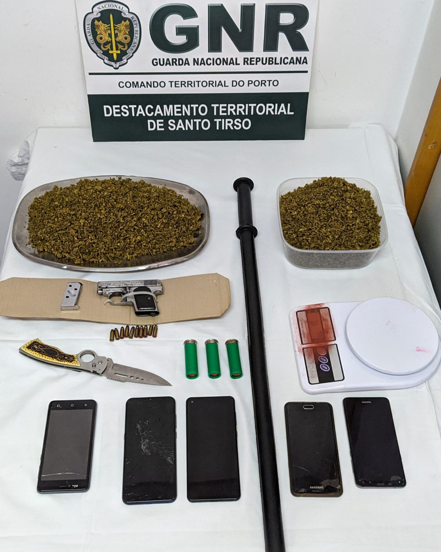 O Comando Territorial do Porto, através do Núcleo de Investigação Criminal (NIC) de Santo Tirso, hoje, dia 2 de junho, deteve três homens e duas mulheres, com idades entre os 26 e os 70 anos, por posse de arma proibida, ameaças e tráfico de estupefacientes, no concelho de Valongo.