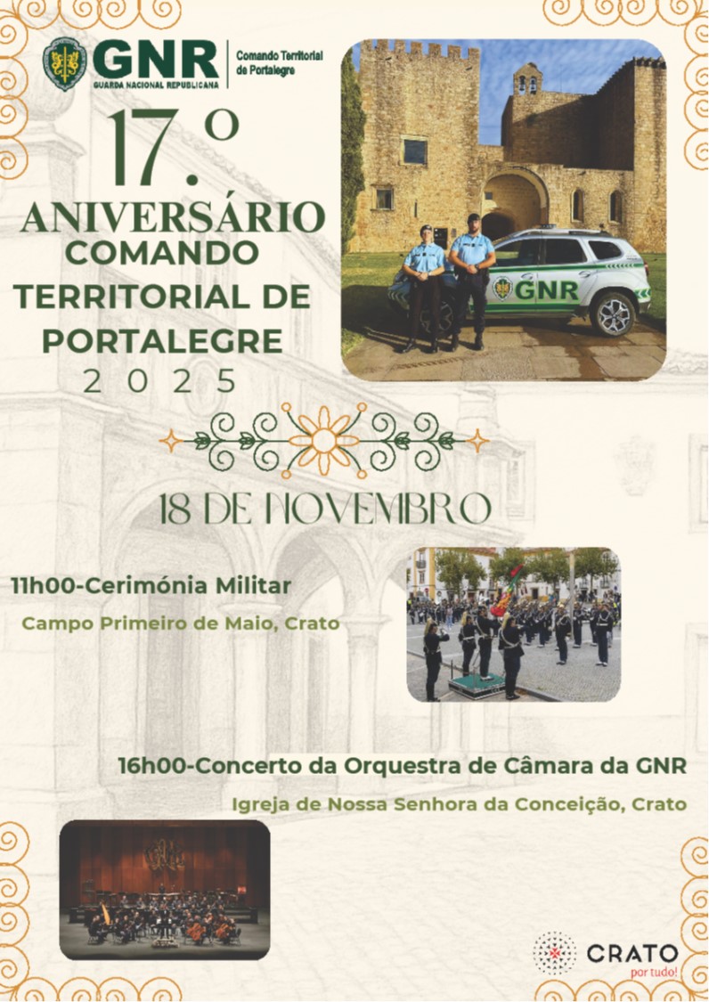 O Comando Territorial de Portalegre assinala o seu 17.º aniversário, reafirmando o compromisso de serviço público, dedicação e proximidade às populações do distrito de Portalegre.