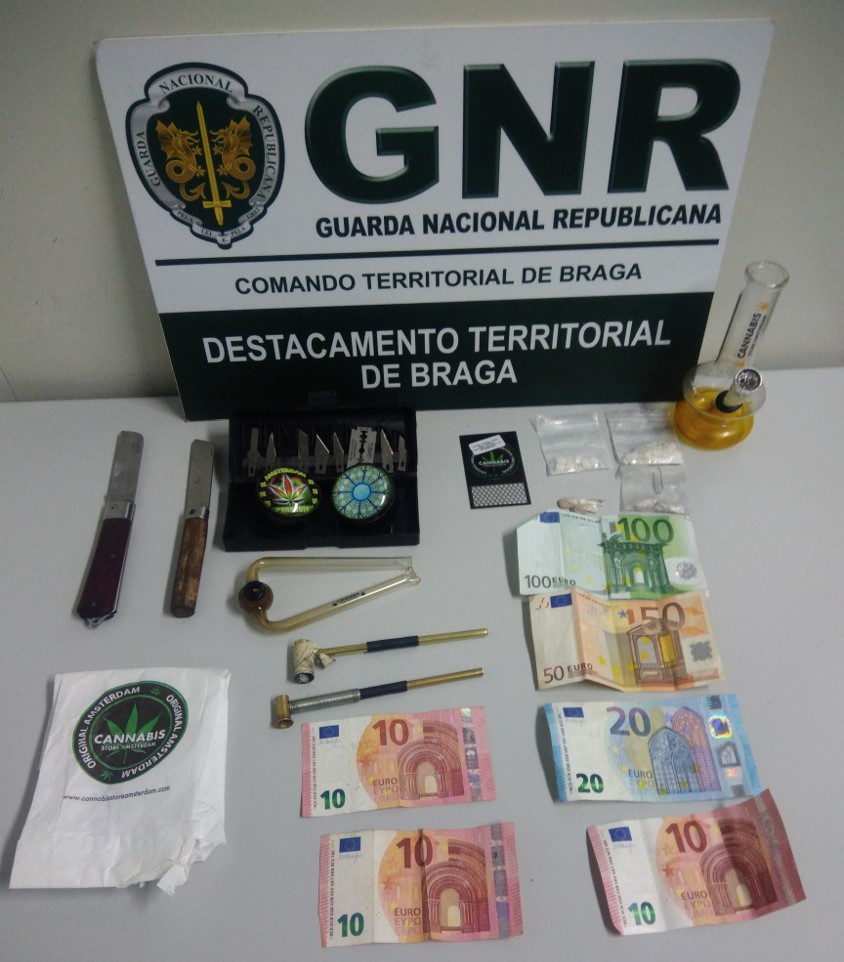 O Comando Territorial de Braga, através do Posto Territorial de Braga, ontem, dia 27 de outubro, deteve dois homens de 28 e 46 anos por tráfico de estupefacientes, em Palmeira, no concelho de Braga.