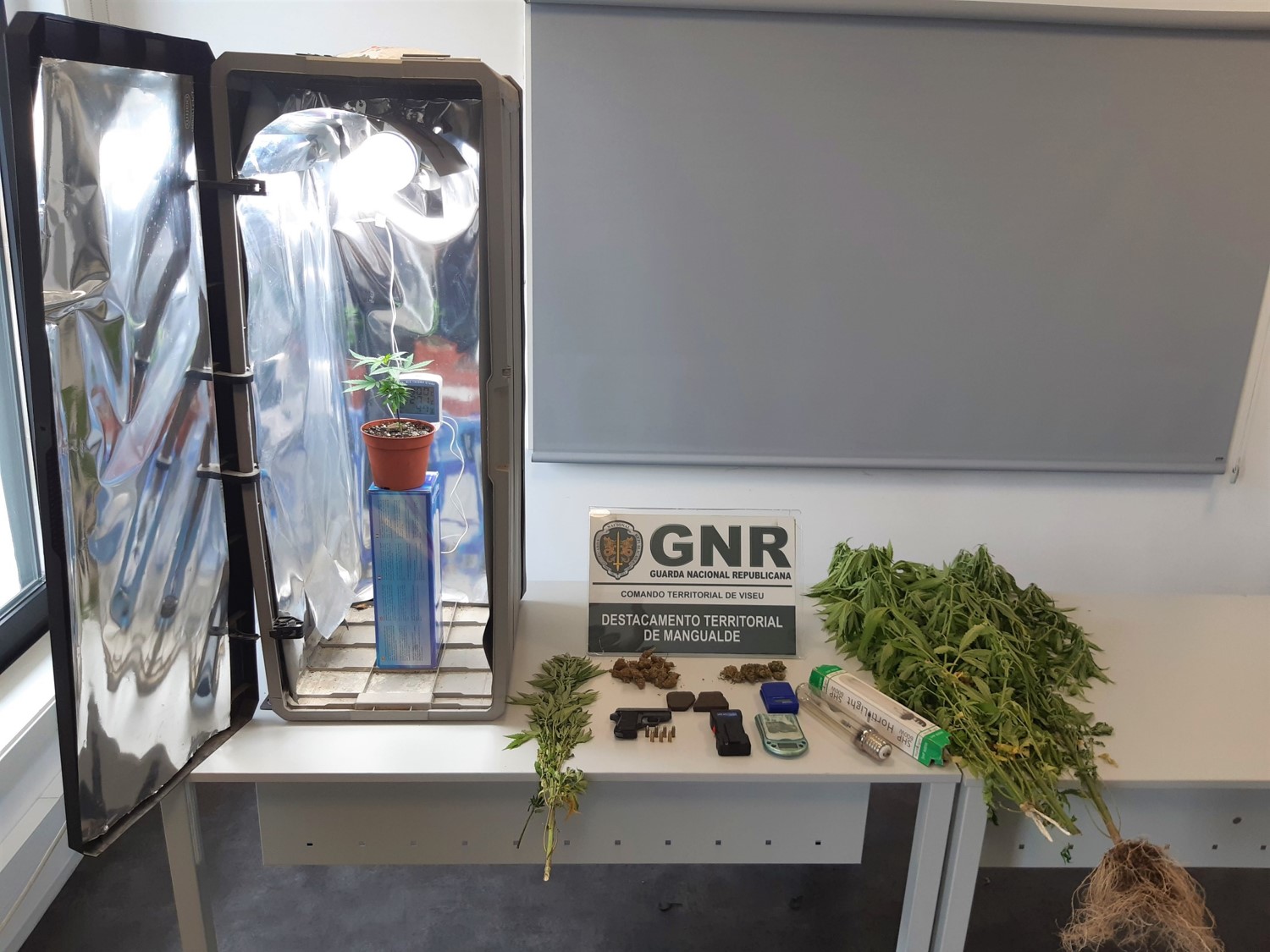 O Comando Territorial de Viseu, através do Núcleo de Investigação Criminal (NIC) de Mangualde, ontem, dia 22 de julho, deteve dois homens, de 27 e 29 anos, por cultivo de estupefacientes e posse ilegal de arma, no concelho de Nelas.