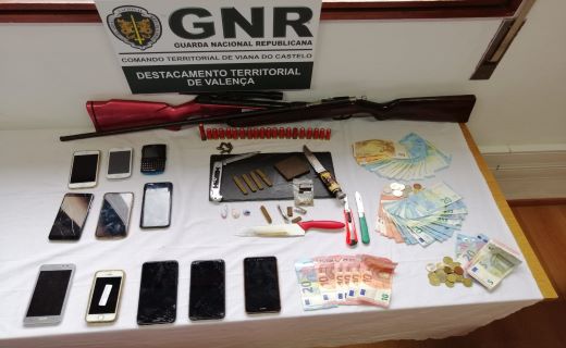 O Comando Territorial de Viana do Castelo, através do Núcleo de Investigação Criminal de Valença, no dia 26 de junho, deteve cinco homens e constituíram arguidos outros três, com idades compreendidas entre os 17 e os 29 anos, por tráfico de estupefacientes e posse ilegal de armas, em Valença.