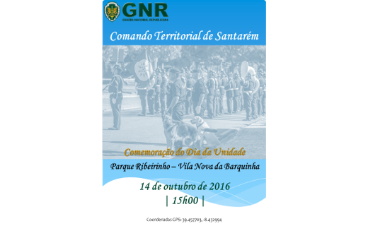 O Comando Territorial de Santarém comemora hoje, dia 14 de outubro, pelas 15:00 horas, em Vila Nova da Barquinha, o seu Dia da Unidade.