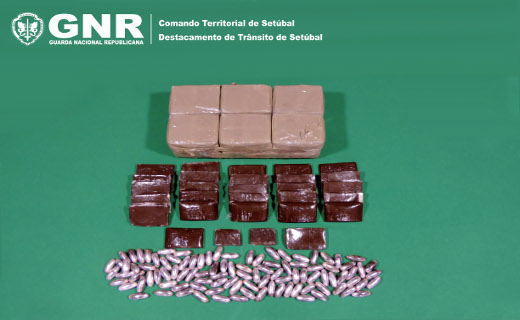 O Comando Territorial de Setúbal, através do Destacamento de Trânsito, apreendeu ontem, dia 4 de abril, 16,55 quilos de haxixe (equivalente a 33 100 doses), na A2 em Alcácer do Sal.
