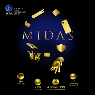 A Guarda Nacional Republicana, através da Unidade de Acção Fiscal (UAF) e sob direção da Procuradoria Europeia (European Public Prosecutor's Office - EPPO), ontem, dia 28 de fevereiro, deu cumprimento a sete mandados de busca em escritórios, dos quais resultou a apreensão de diversa documentação, em papel e em suporte digital, no âmbito da Operação “MIDAS”.