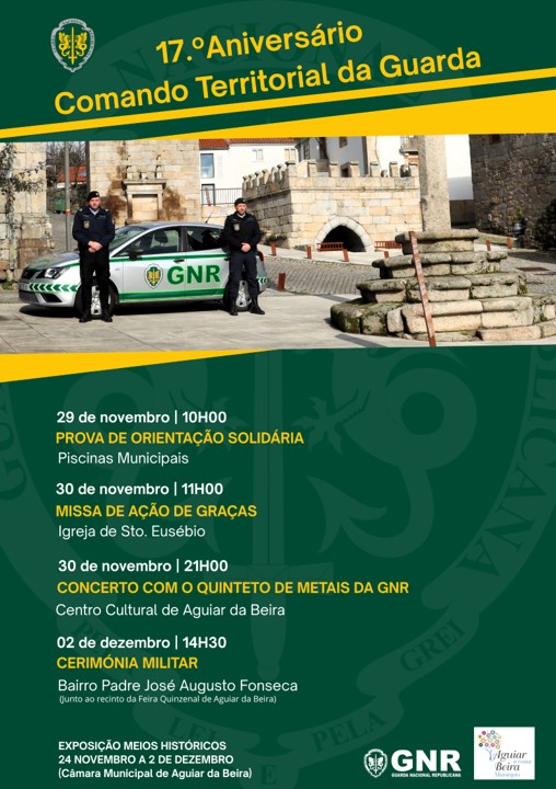 O Comando Territorial da Guarda celebra, no dia 2 de dezembro, o seu 17.º aniversário, assinalando mais um marco de compromisso, dedicação e serviço público em prol da segurança das populações do distrito da Guarda.