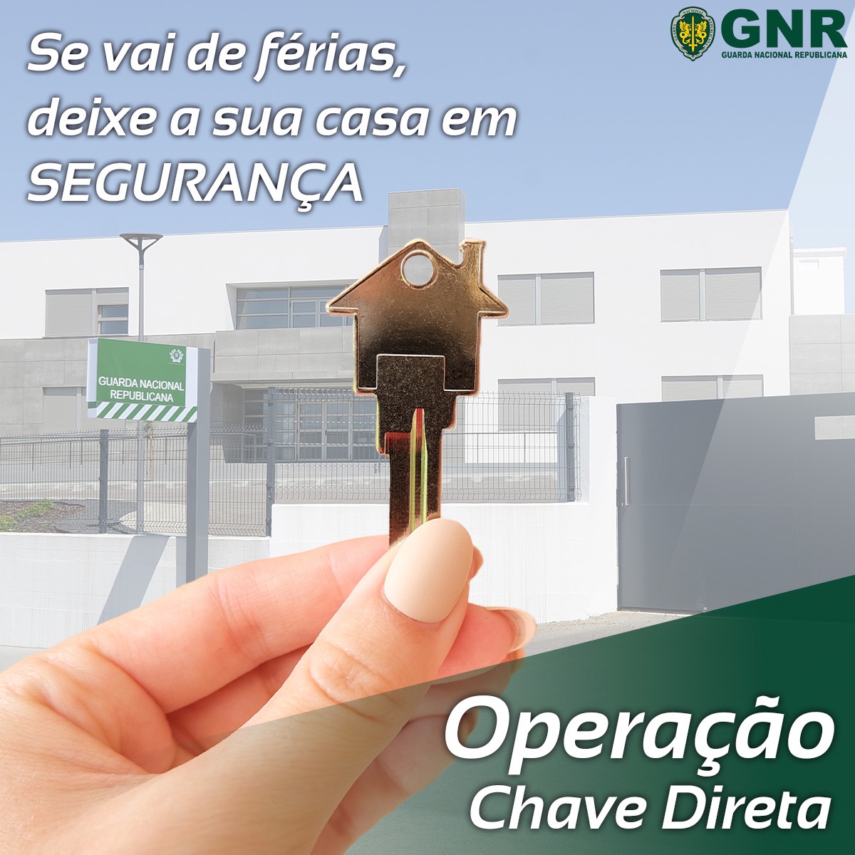 A Guarda Nacional Republicana (GNR), entre os dias 15 e 23 de junho, executa a “Campanha Residência Segura 2023 | Programa “Verão Seguro – Chave Direta”, em todo o território nacional continental, a fim de alertar sobre os procedimentos de segurança a adotar para prevenção de situações de furto e roubo em residências, ocorridos em especial durante a ausência dos cidadãos no período das férias de verão.